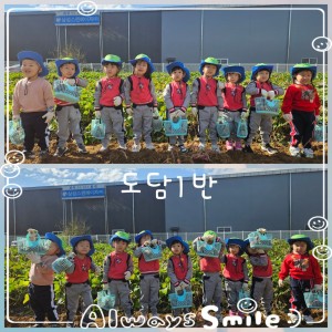 4세 귀엄둥이 기다리고 기다리던 고구마 캐기를체험해 보았습니다.~~선생님과 손잡고 걸어서 드디어 홍익 농장에도착하였습니다~~고구마 밭을 보니 친구들 기쁨의 탄생과환호성을 지르며 즐거워 하는 모습이사랑스럽습니다~~영아 스스로 고구마를 열심히 캐고 바구니에 담으며수확의 기쁨도 두배 성취감과 느낄 수 있었던하루엿씁니다.내일은 요리 활동을 합니다.준비물: 앞치마를 꼭 챙겨서 보내주세요~