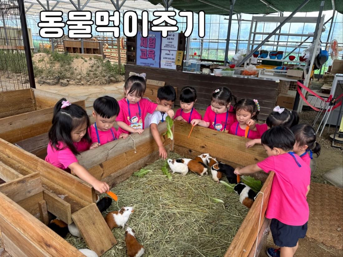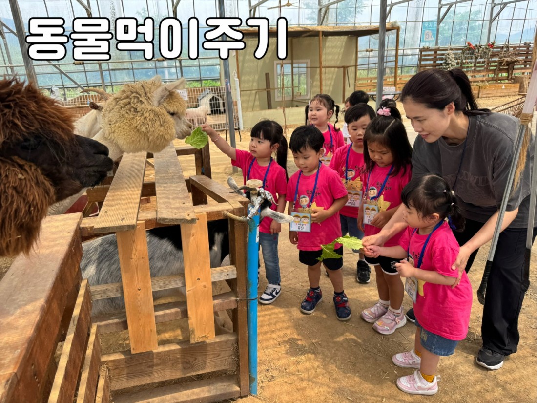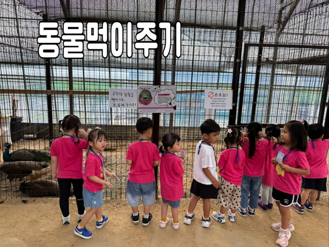 직접 주어보았어요. 친구들이 동물들에게 먹이를 주며