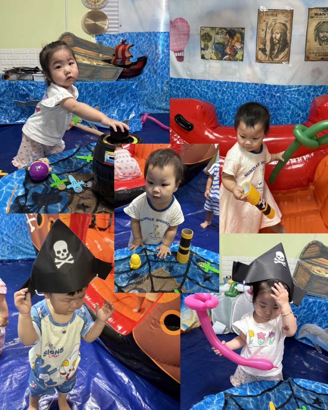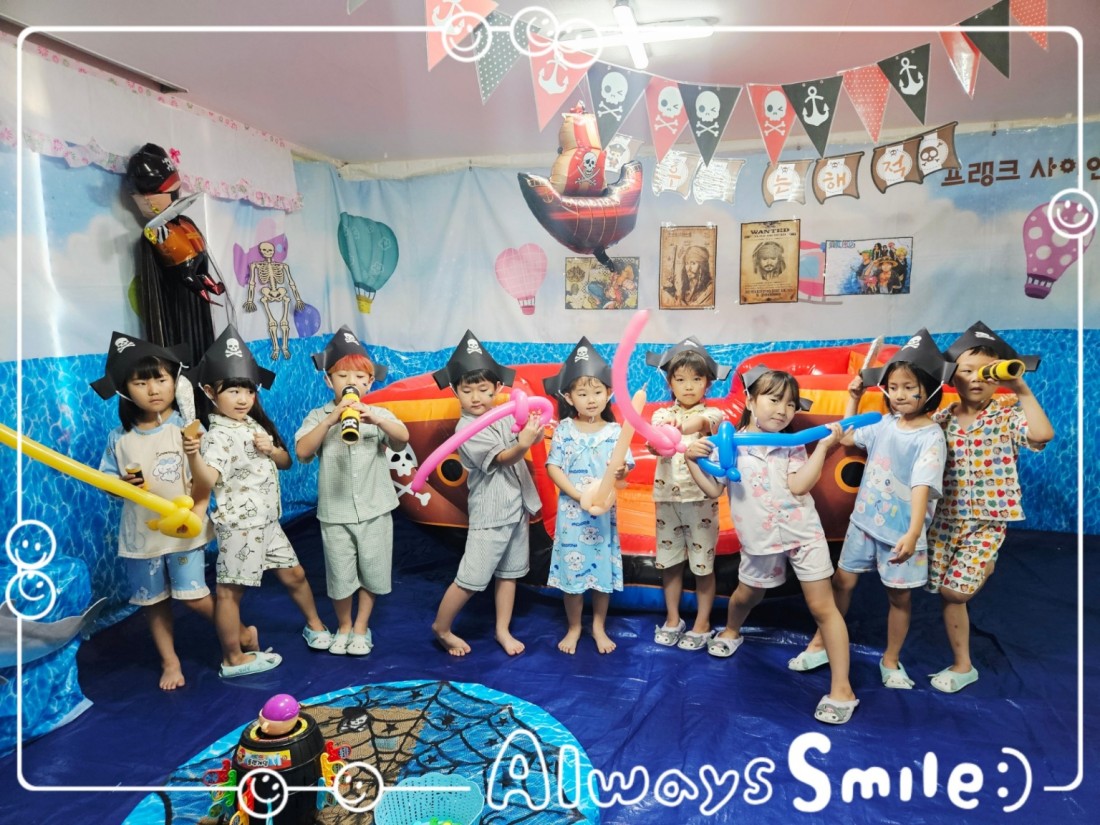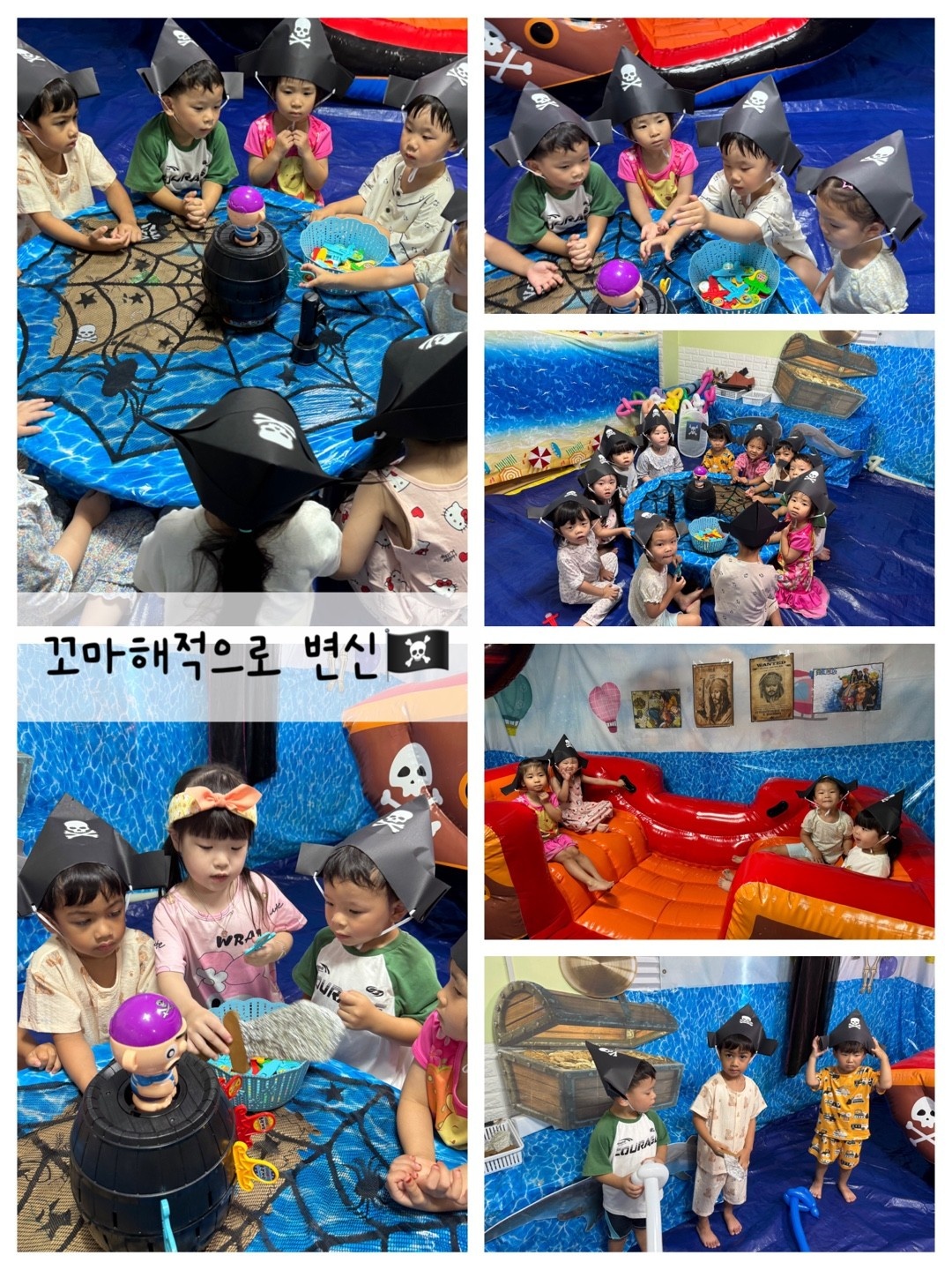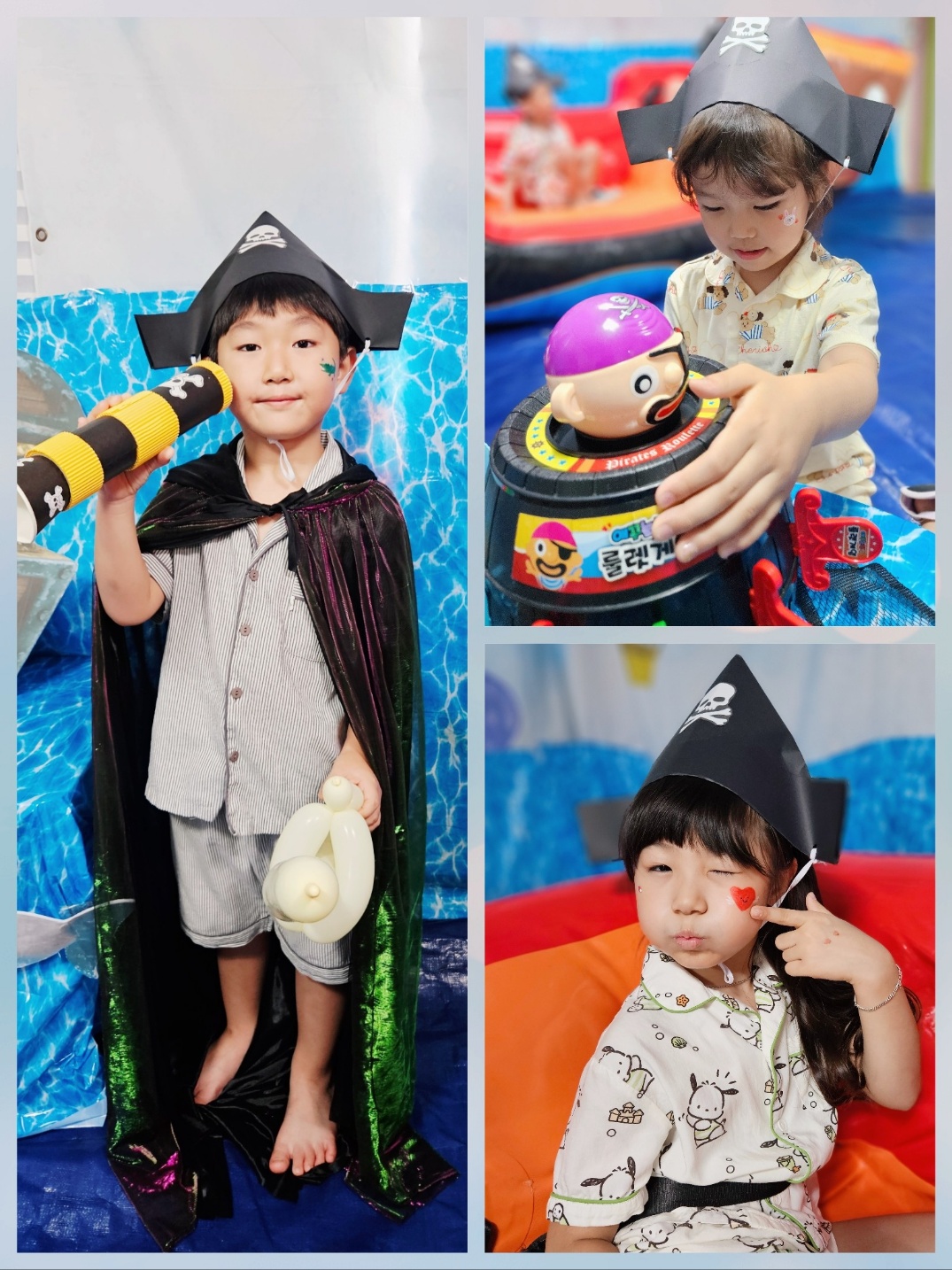아이들이 하루 종일 파자마를 입고, 물놀이도 하고,