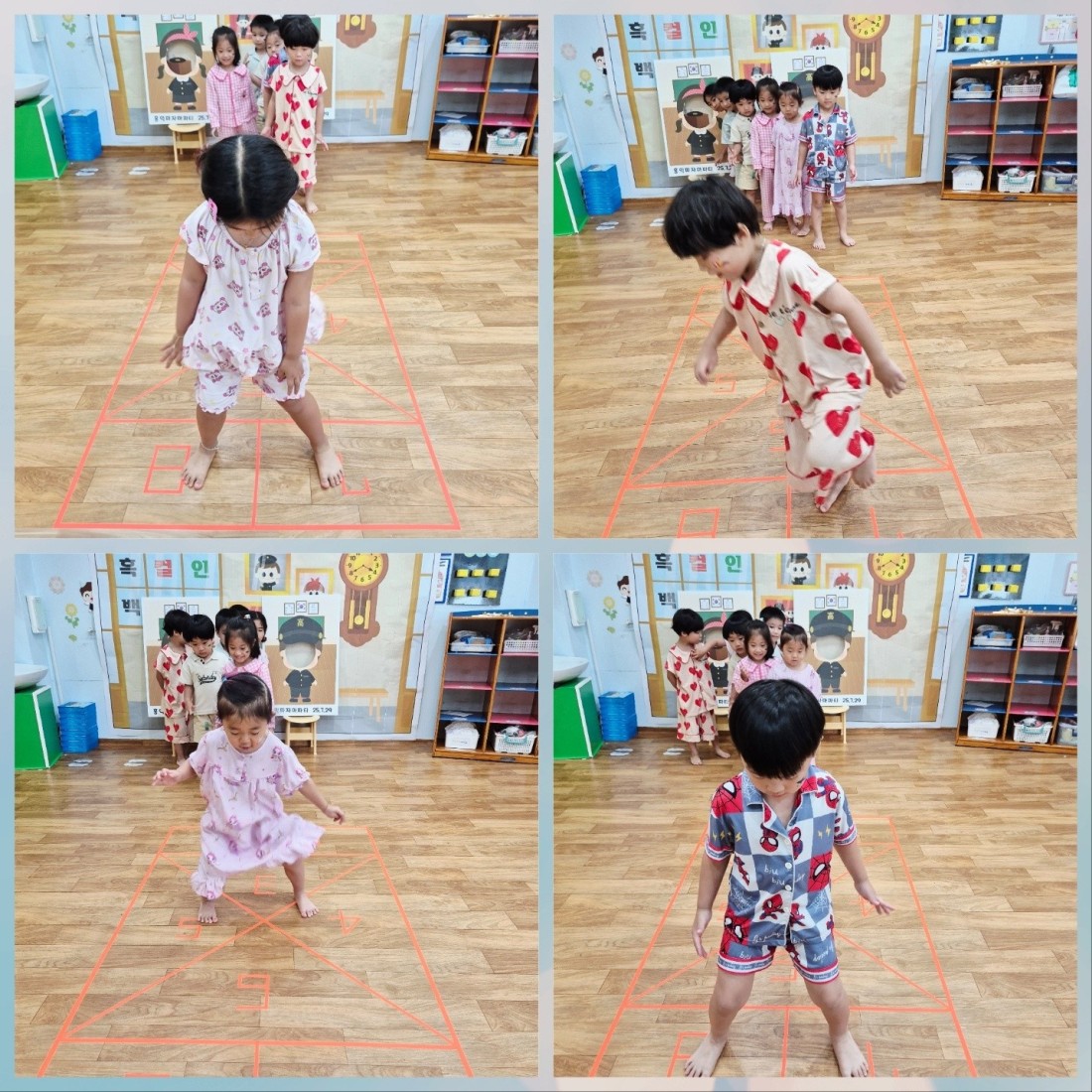 아이들이 하루 종일 파자마를 입고, 물놀이도 하고,