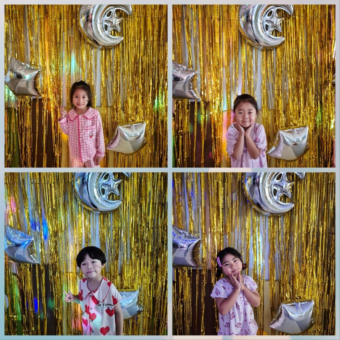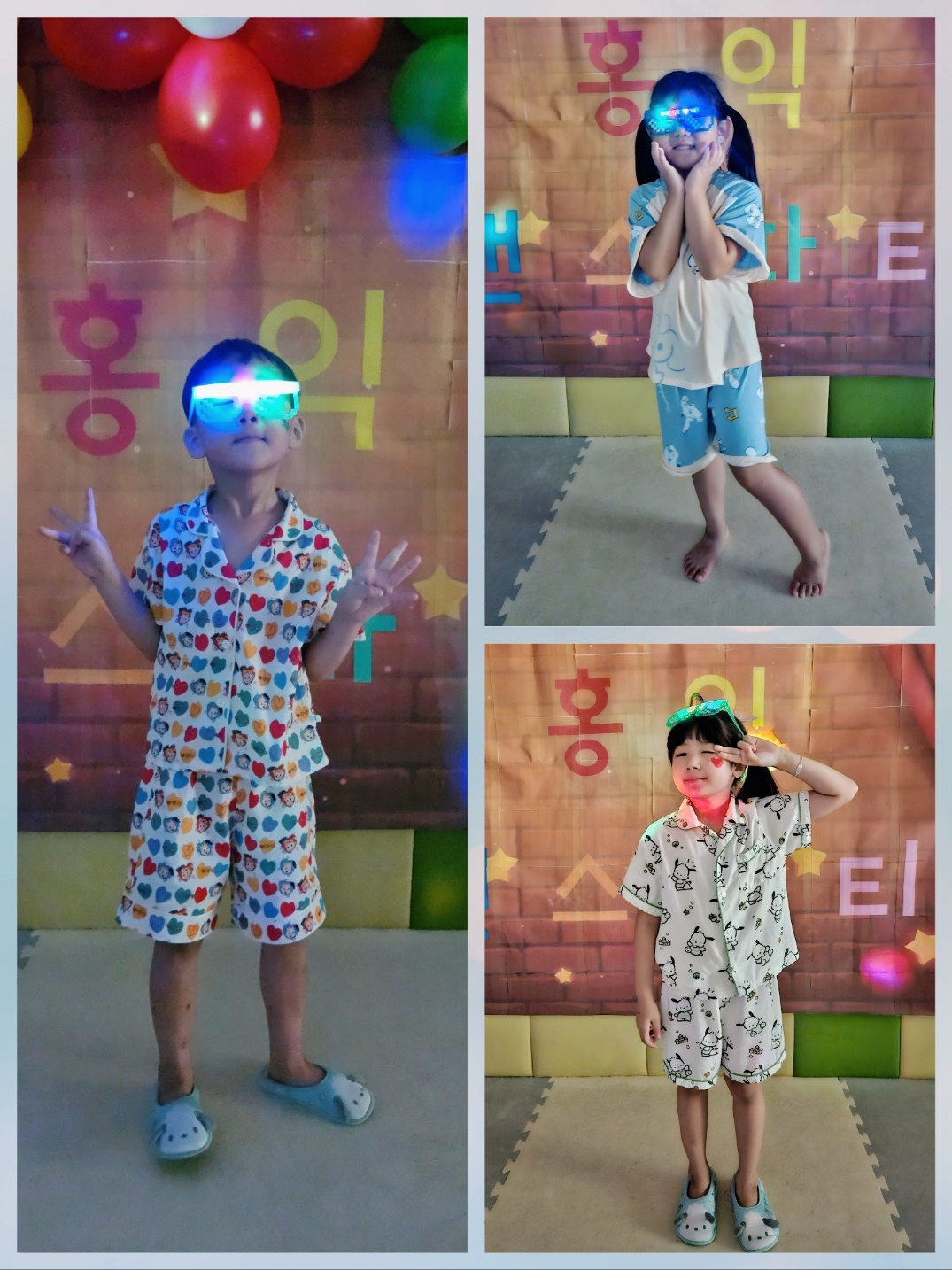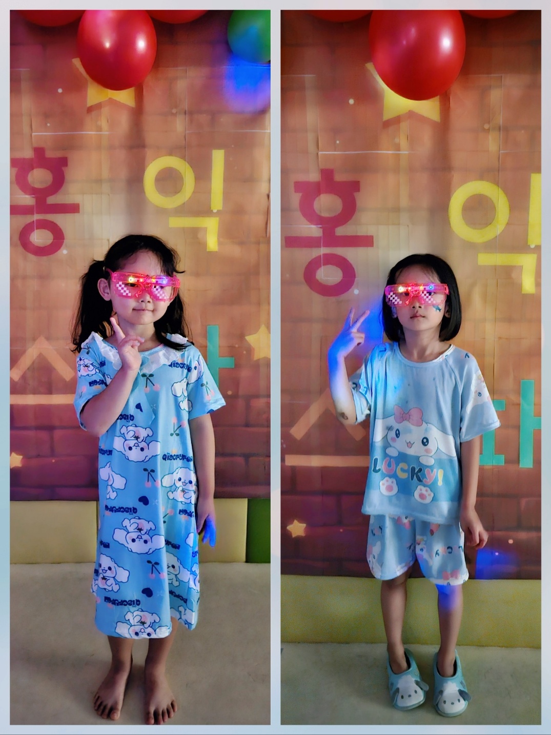 아이들이 하루 종일 파자마를 입고, 물놀이도 하고,