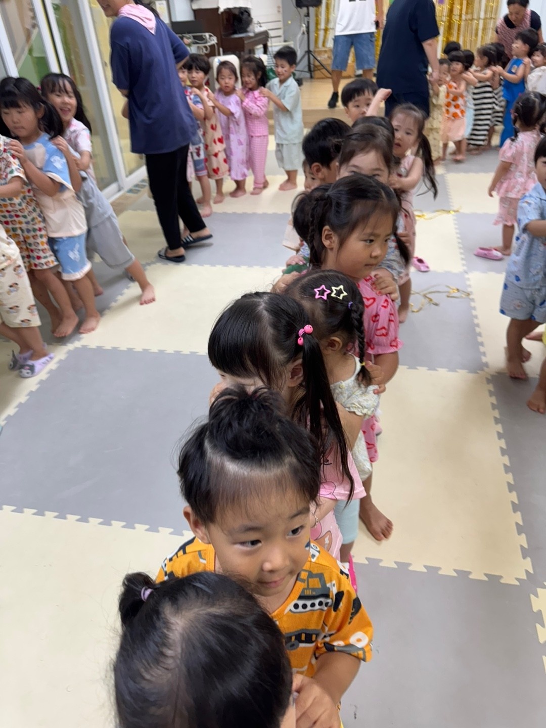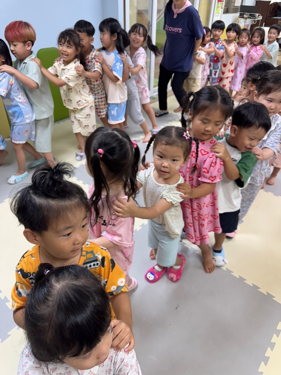 아이들이 하루 종일 파자마를 입고, 물놀이도 하고,