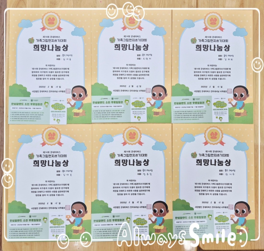 제출한 친구들 모두 상자잉 수여되었으며, 함께 받은