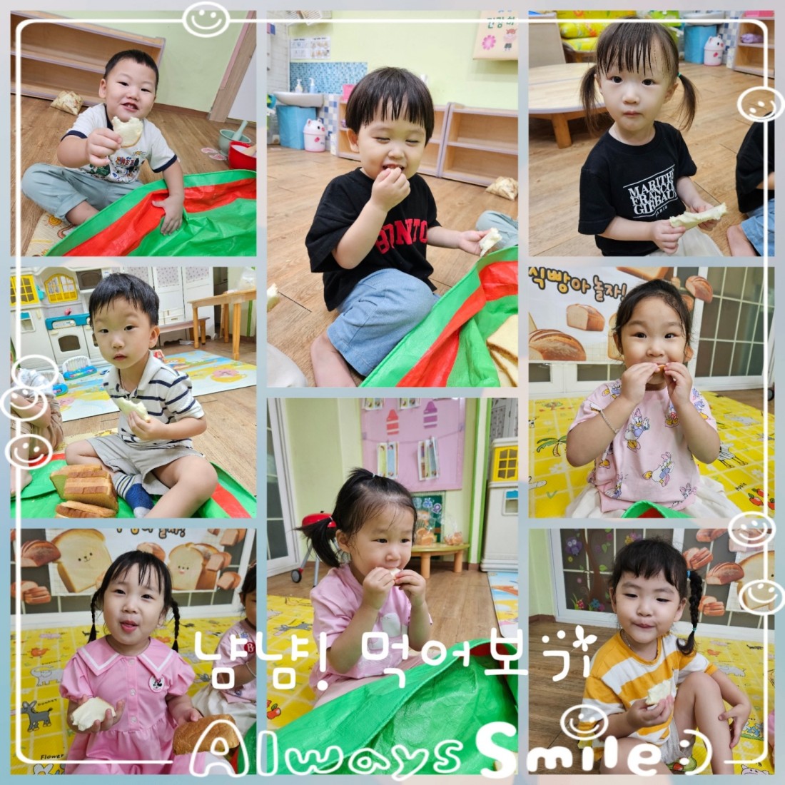 아이들이 교실에 들어서자 뽀얀 식빵이 준비되어