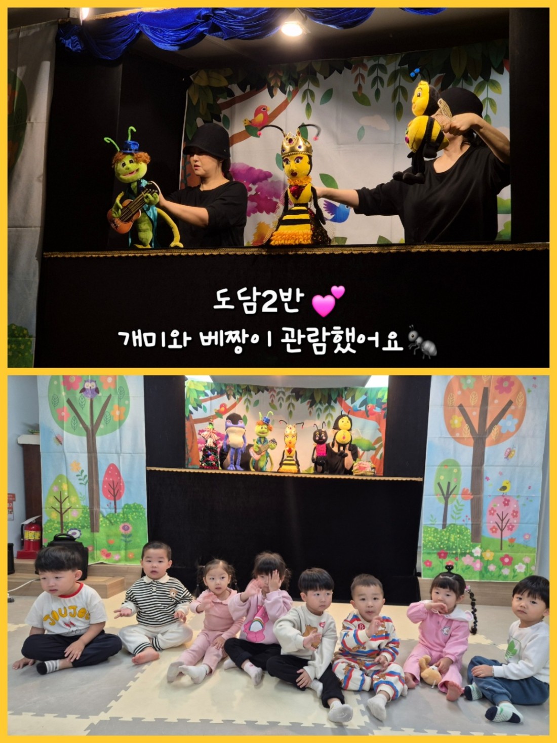 오늘은 '개미와베짱이'인형극을 관람했어요.