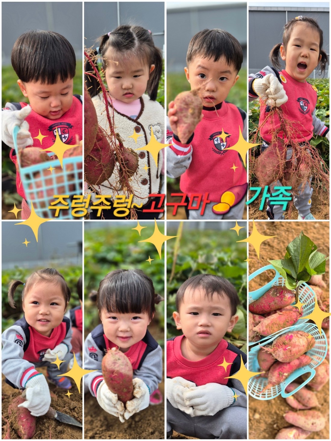 농부가 되어 고구마 수확에 큰 기쁨과 행복을 느끼며