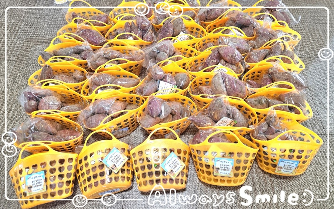 수확한 고구마는 깨끗이 닦아 가정으로 보내드릴