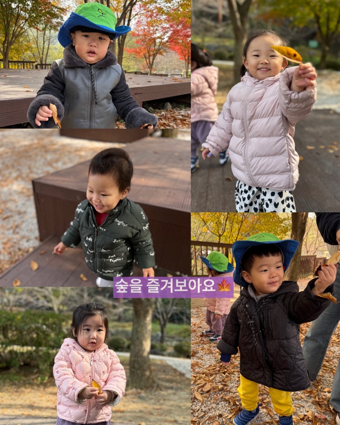 아이들은 낙엽을 손에 쥐어보며 "바스락바스락"