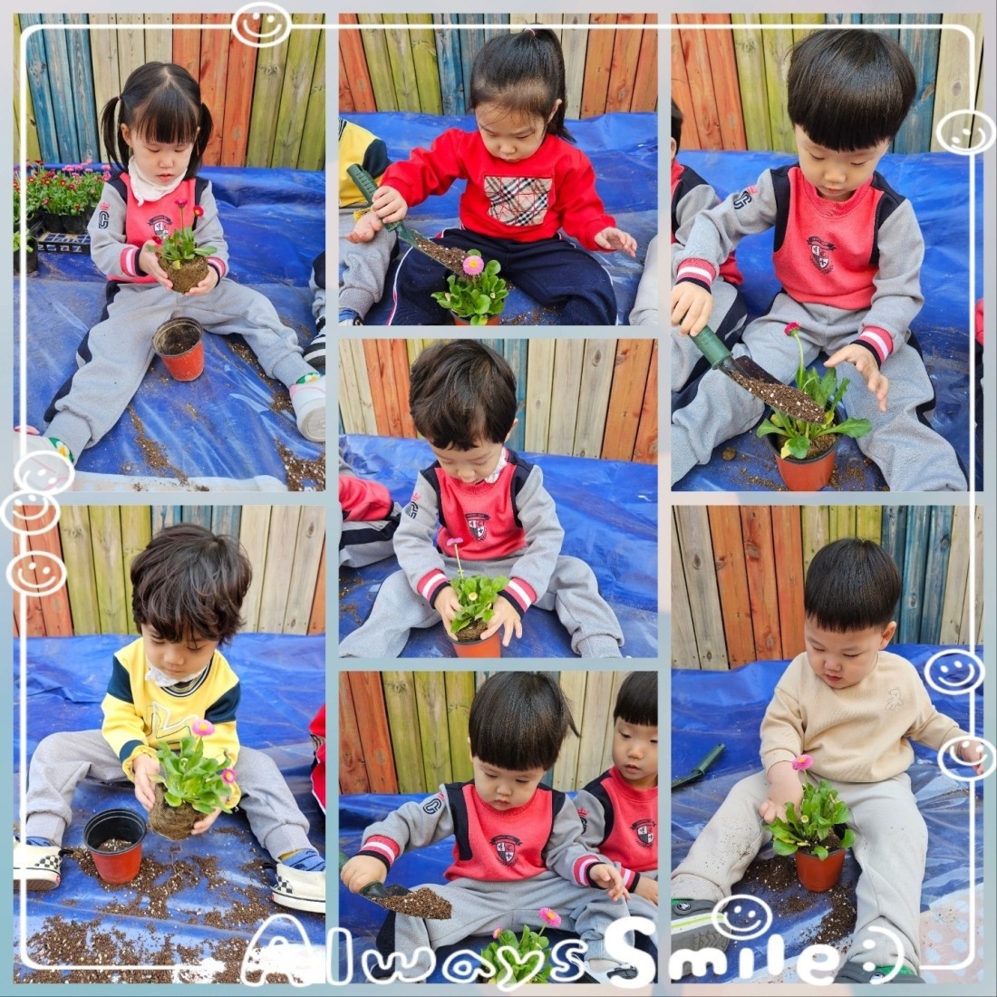 4월 4일 식목일 행사(데이지꽃 심기) 토리1.2.3반(3세)