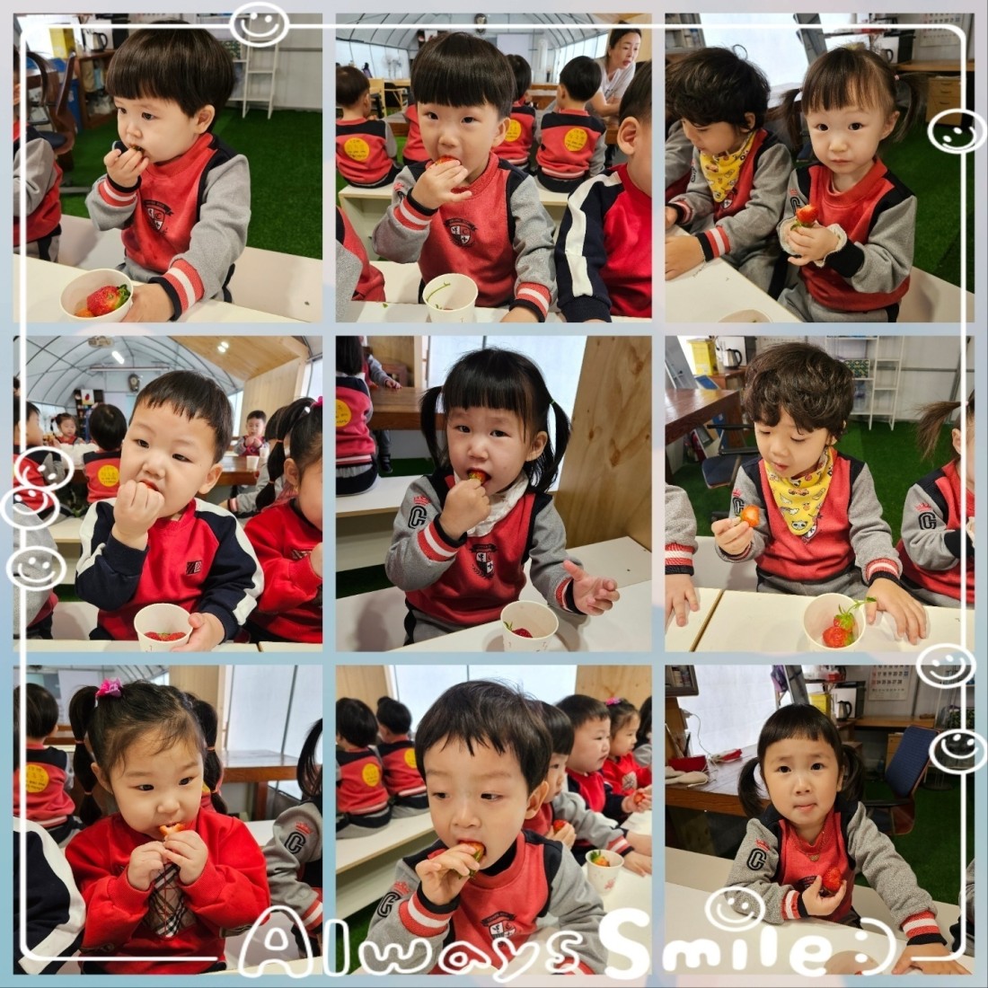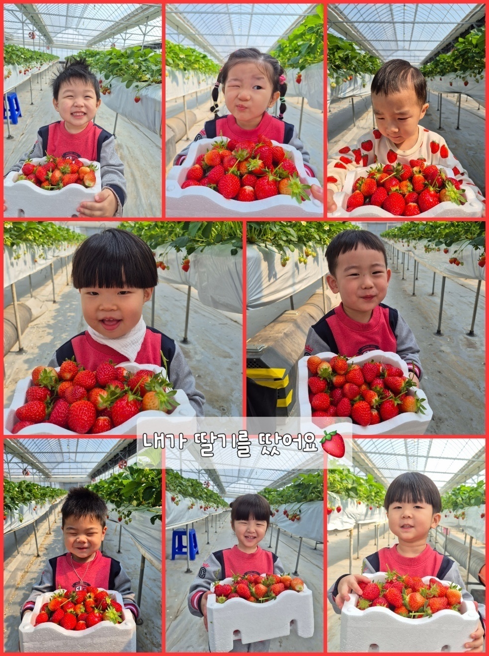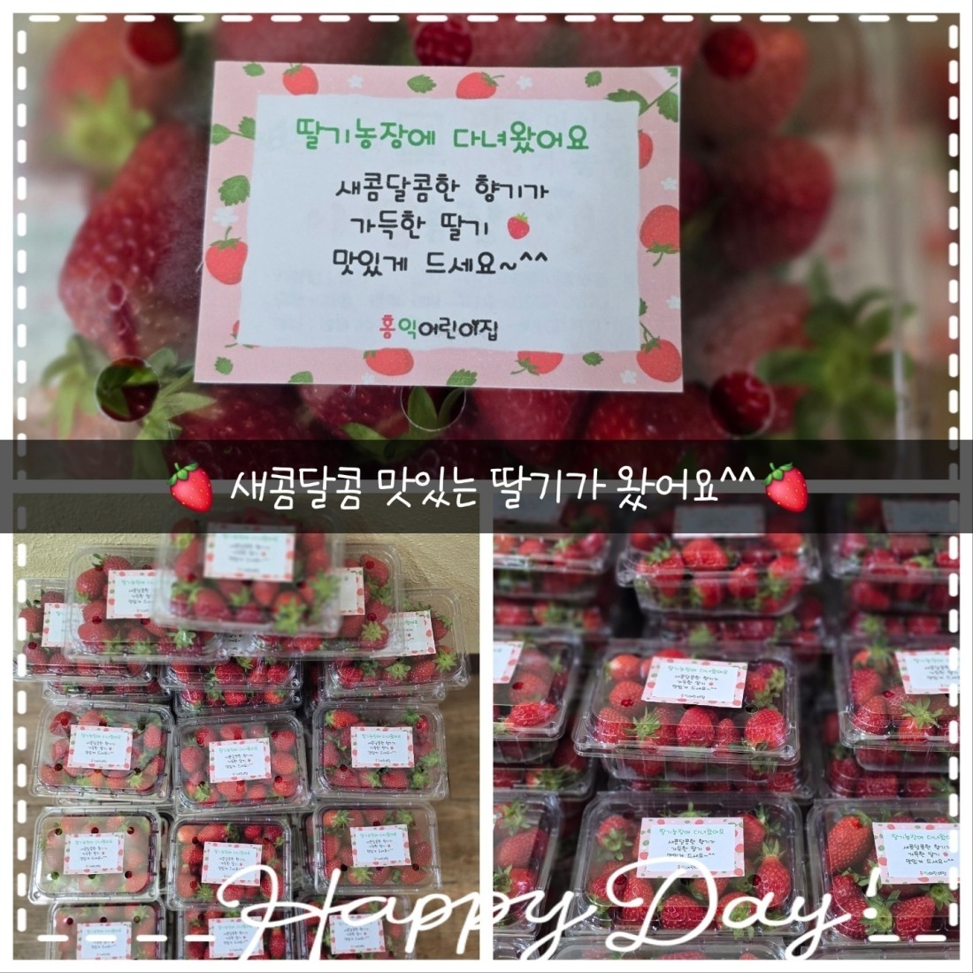 홍익 가족분들도 오늘 우리 아이들이 딴 샤콤달콤 딸기 가정으로 보내드리오니 같이 시식해보세요~