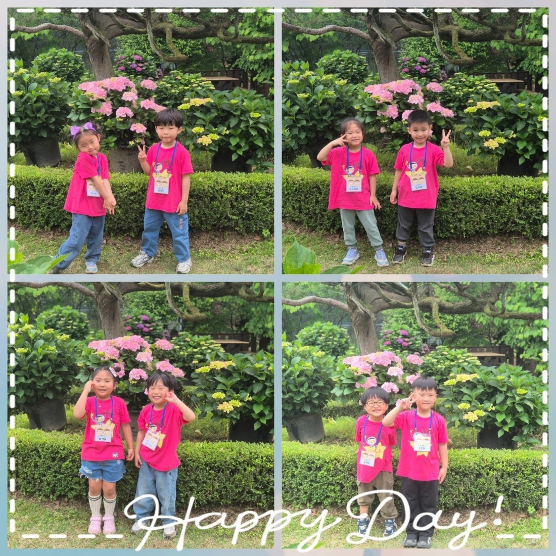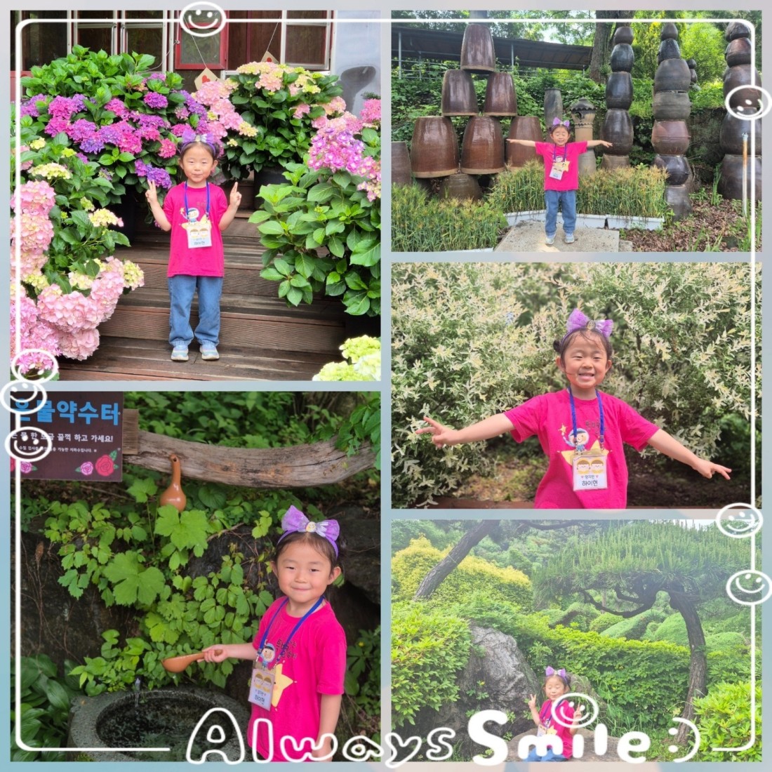 비가 온 후라 아주 초록빛이 나는 나무들과 알록달록 예쁜 수국들이 우리 홍익 친구들과 너무도 잘 어울렸답니다.