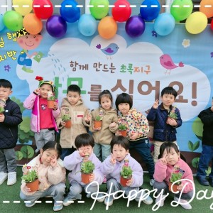 새순반(0세)식목일 기념 푸른 지구 만들기 활동을 실천해 보았어요~!꽃과 나무 등 식물 등을 심어 깨끗한 공기를만드는 행동이 지구를 깨끗하게 만들어준다는 것에알아보며 예쁜 데이지꽃을 심어보았답니다.