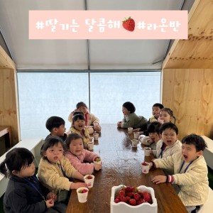 도담1.2.3반(4세)딸기밭에 가서 양손가득 딸기 따왔어요~!그림책에서만 보던 딸기꽃들과 딸기들이주렁주렁 열려있어 신이 난홍익친구들이었어요~!직접 딴 딸기를 맛보는 시간도가졌는데 맛있는지 한박스는 우습게홀라당 다 먹어버렸답니다~!홍익 가족분들도 오늘 우리 아이들이 딴샤콤달콤 딸기 가정으로 보내드리오니같이 시식해보세요~