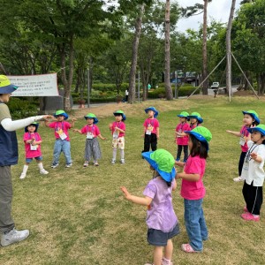 라온반(5세)숲체험6월 숲체험활동은 용인 초부리유아숲체험원으로 다녀왔어요~!오늘은 날시가 도와주어 덥지 않고,뜨겁지 않은 쾌적하게 활동을 즐겨보았답니다.오늘의 숲 활동- 숲활동 전 준비체조- 왕 거위벌레 알탐색- 아픈 나뭇잎과 건강한 나뭇잎의 차이- 연못 속 올챙이 움직임 탐색하기.- 어미새가 되어 아기새 똥 모아 흔적없애기 게임! (솔방울 똥을 다리사이에 끼워 골인시켜요~!)- 어미와 새끼 카드 짝짝꿍 게임- 어미새가 지은집 관찰하기.- 숲놀이터 이용- 화장실 물마시기 및 포토존 이용*놀이터활동 사진은 언덕이 있어 안전한 놀이지도를 위해개별사진을 찍지 못하였습니다. 놀이환경이어떠한지 참고용으로만 감상해주세요~!