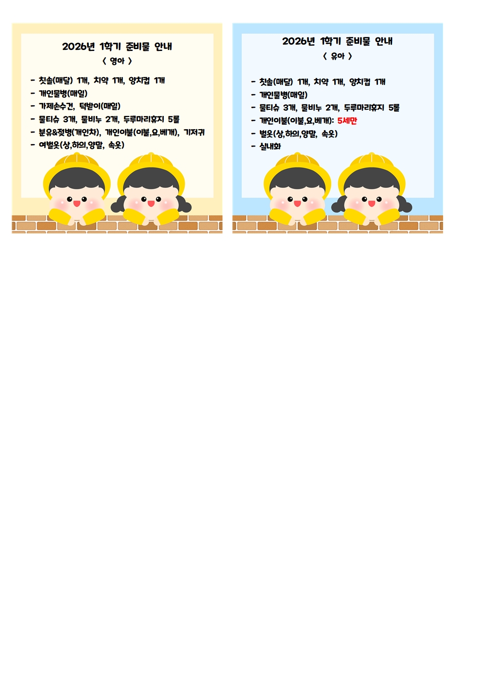 ▶ 모든 준비물에는 아이 이름을 꼭 기재해 주세요.