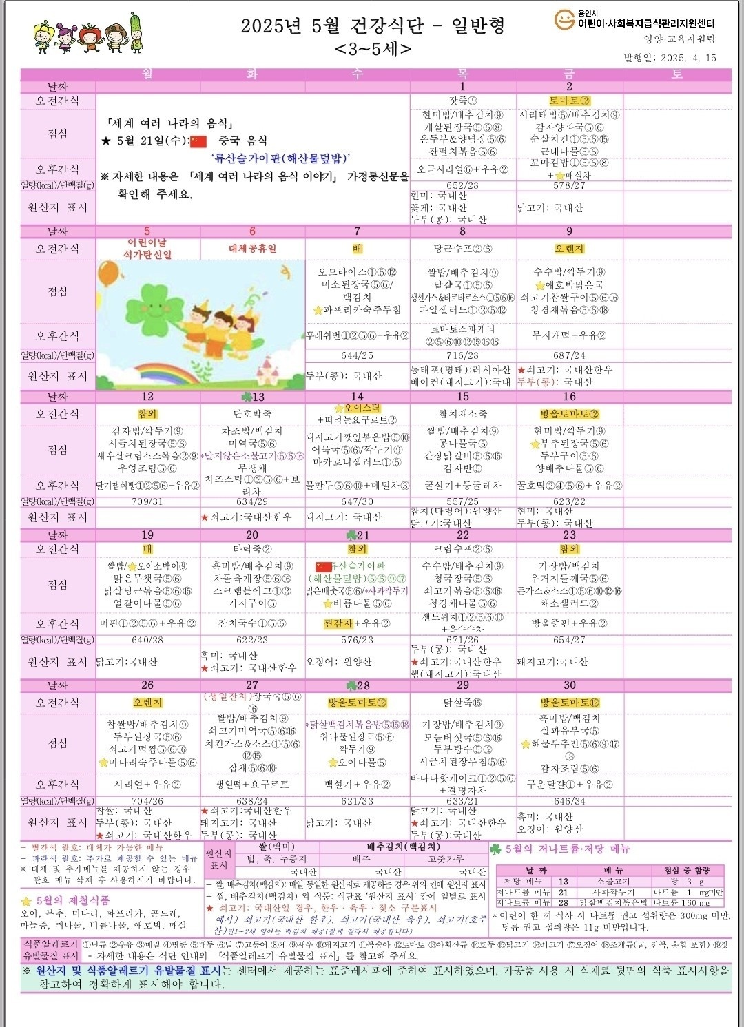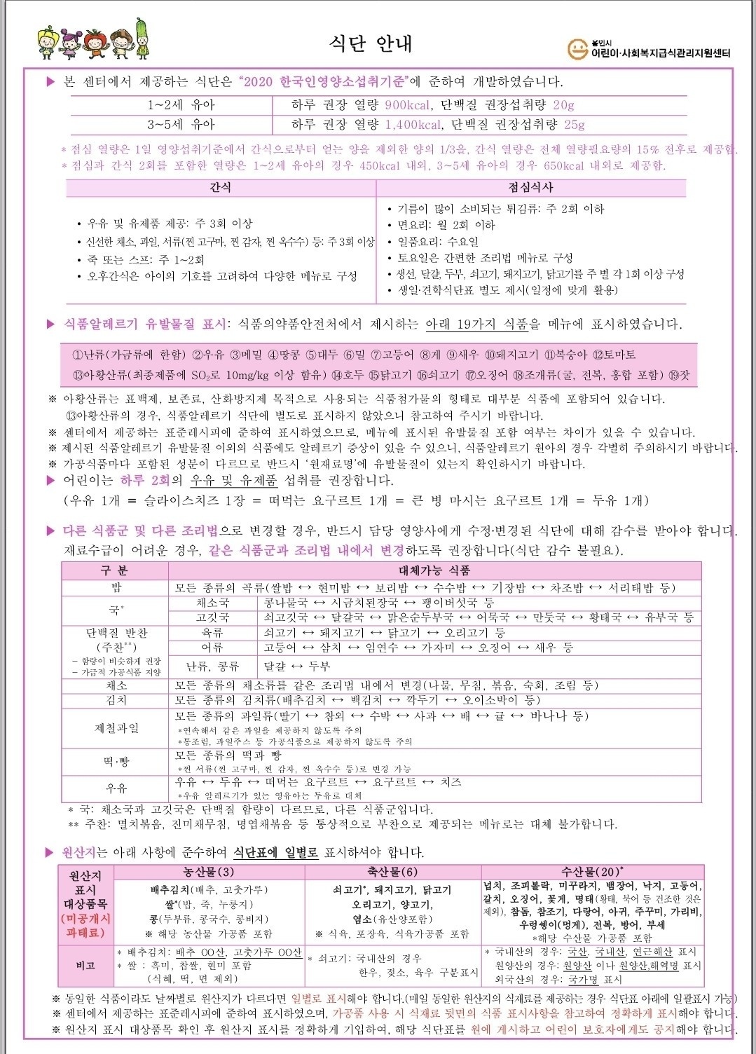 식단은 어린이집 사정에 따라 다소 변경될 수 있음을 양해 부탁드립니다.
