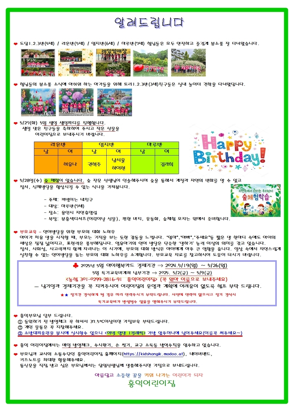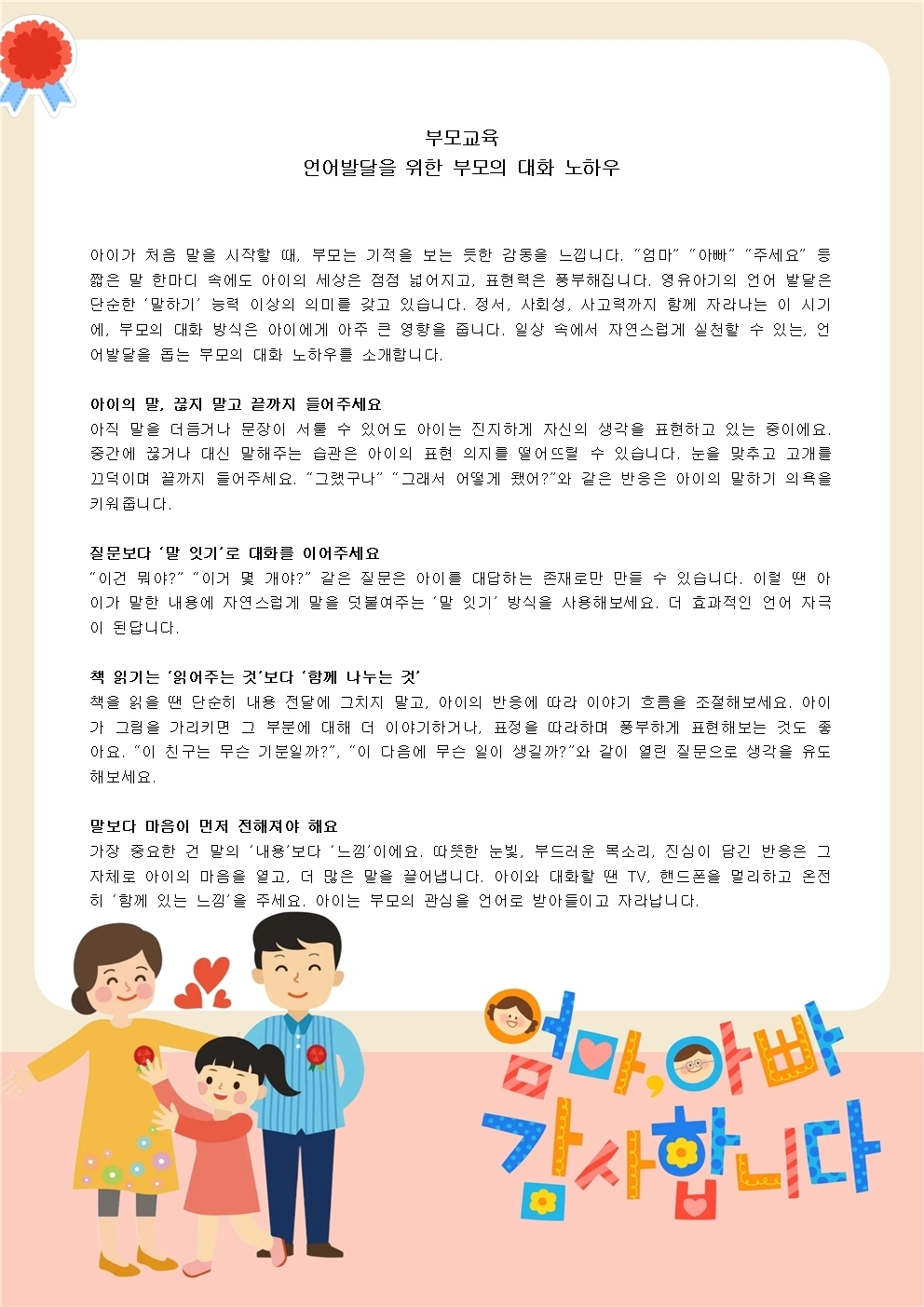 5월 26일 월요일 부모교육(아동학대예방)안내문