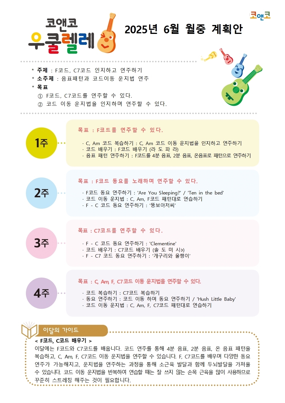 6월 특별활동 계획안(우쿨렐레, 오감,난타,체육)