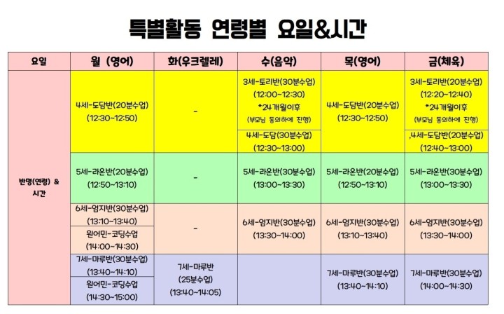 (영어,원어민, 우쿨렐레,음악, 체육)