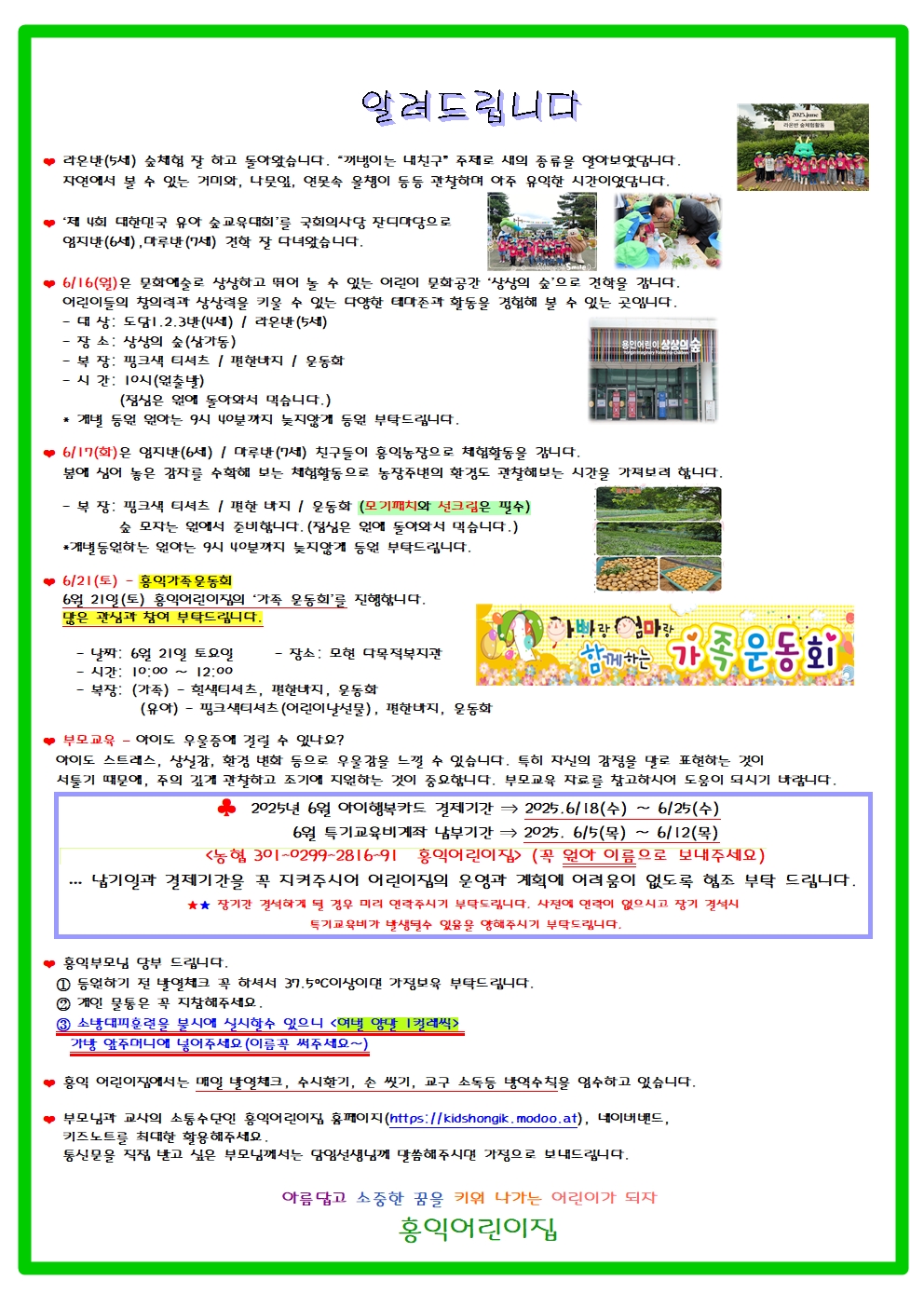 25년도 홍익 가족운동회 초대장(6월 18일)