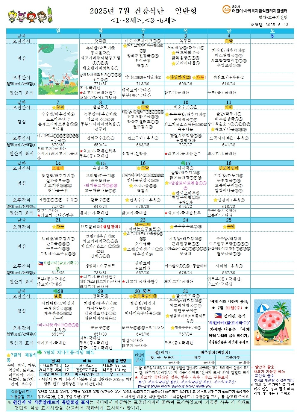 *식단은 어린이집 사정에 따라 다소 변경될 수 있으니 양해부탁드립니다.