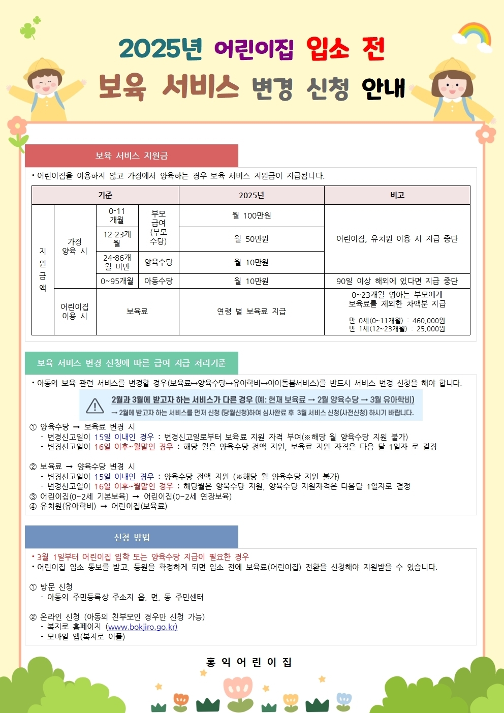 *보육료 변경은 반드시 입소일 당일까지는 해주셔야 합니다.