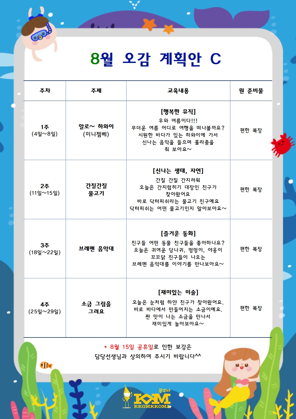 8월 특별활동계획안
