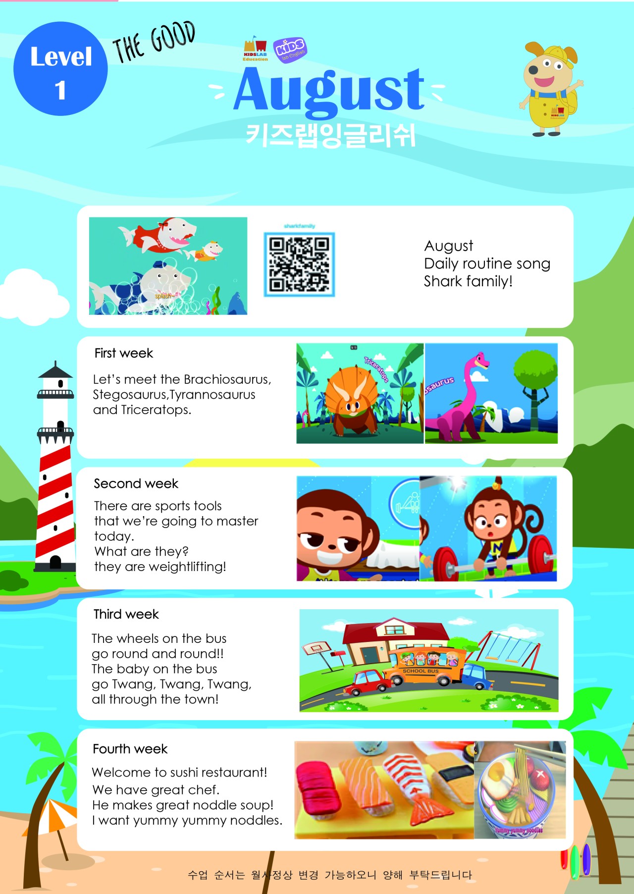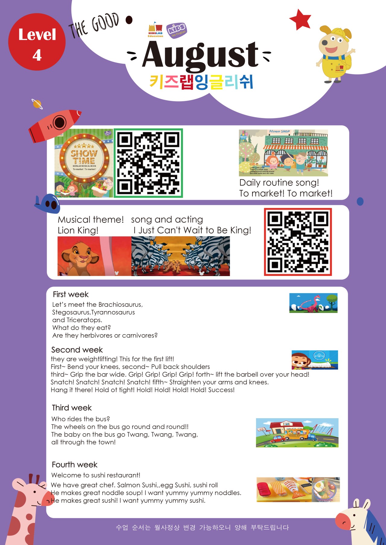 (영어,우쿨렐레,오감,난타,체육)