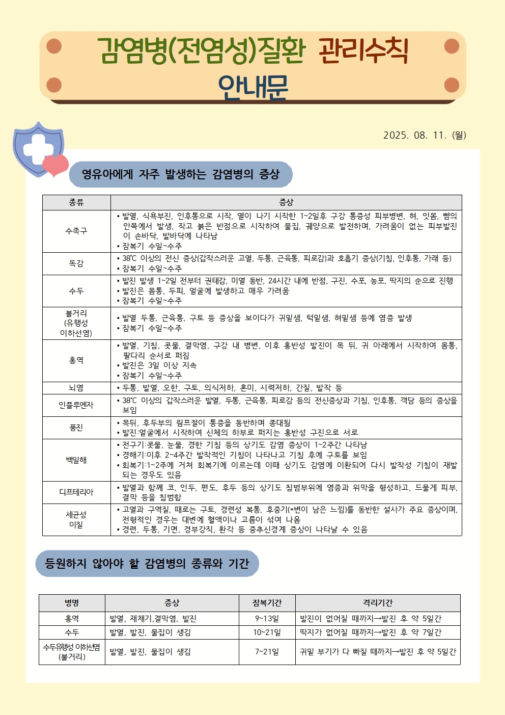 감염병(전염성)질환 관리수칙 안내문 [8월 11일]