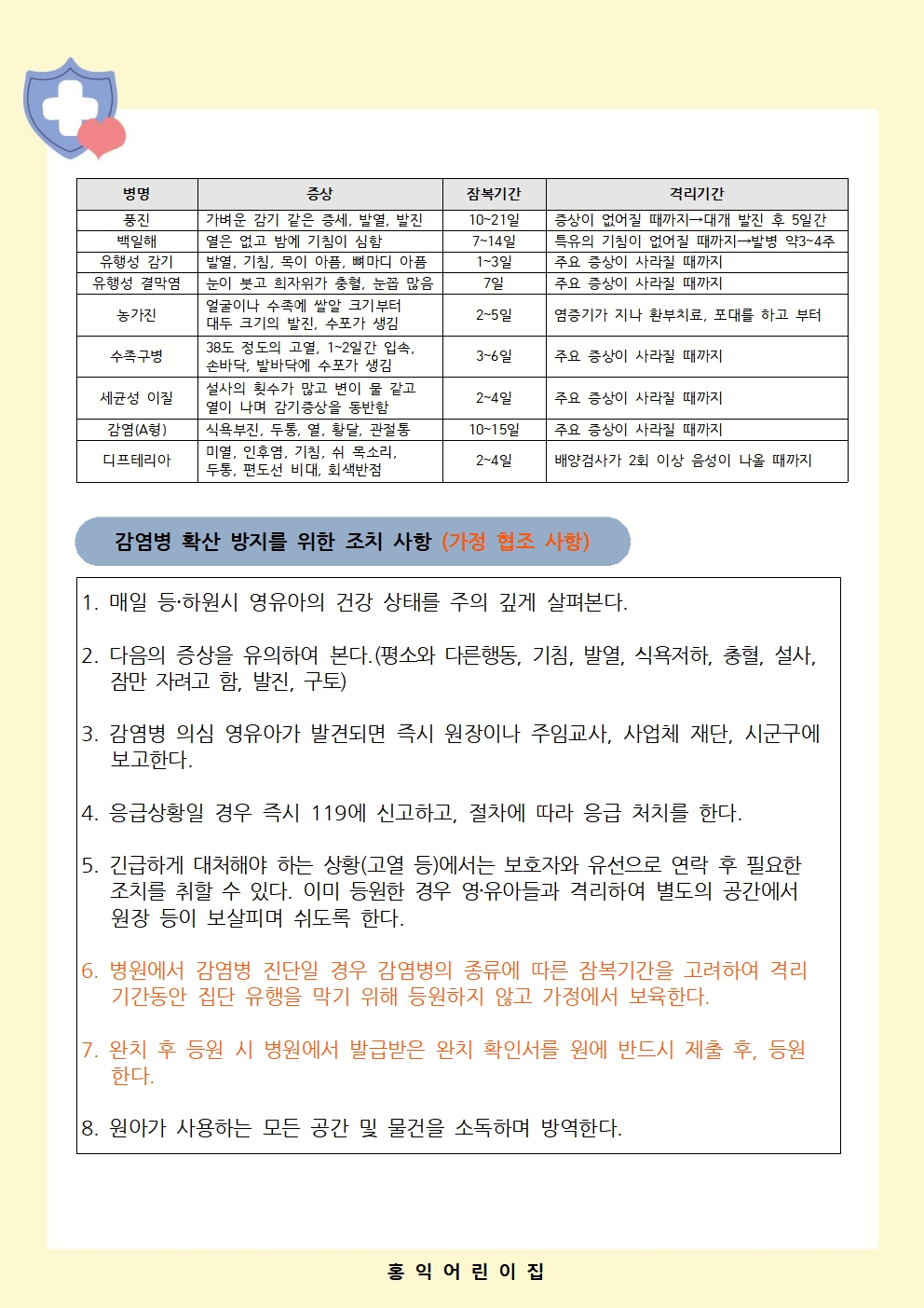 감염병의 증상 및 등원하지 않아야 할