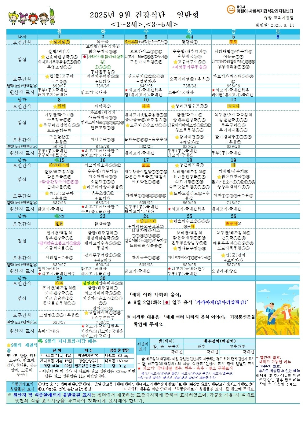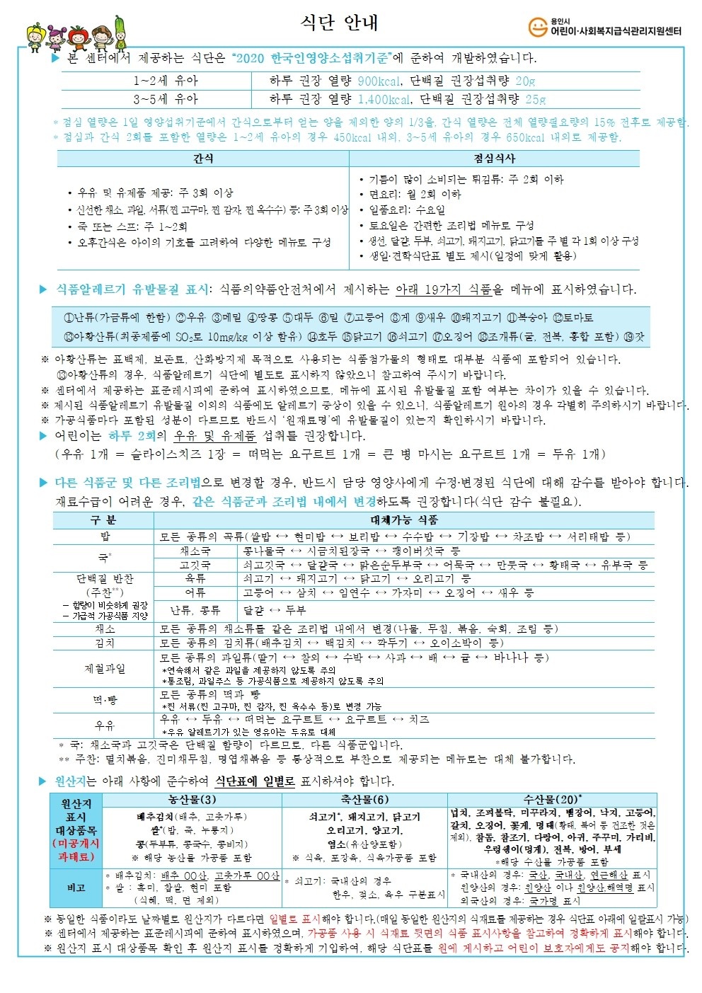 식단은 어린이집 사정에 따라 다소 변경될 수