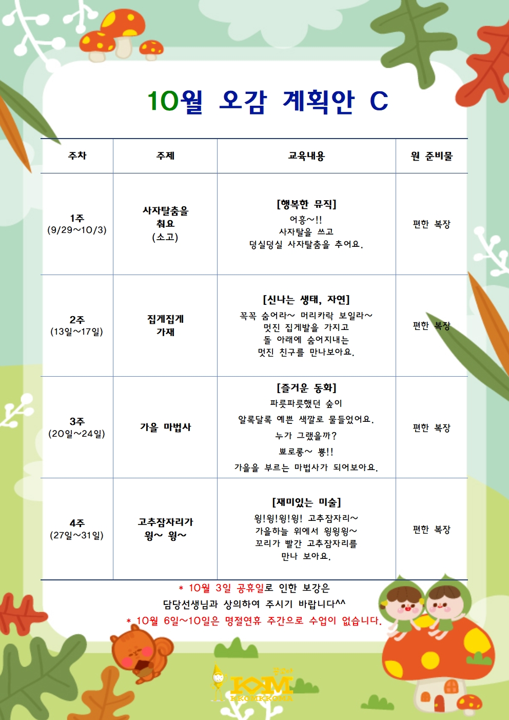10월 1주 알림글 & 부모교육자료