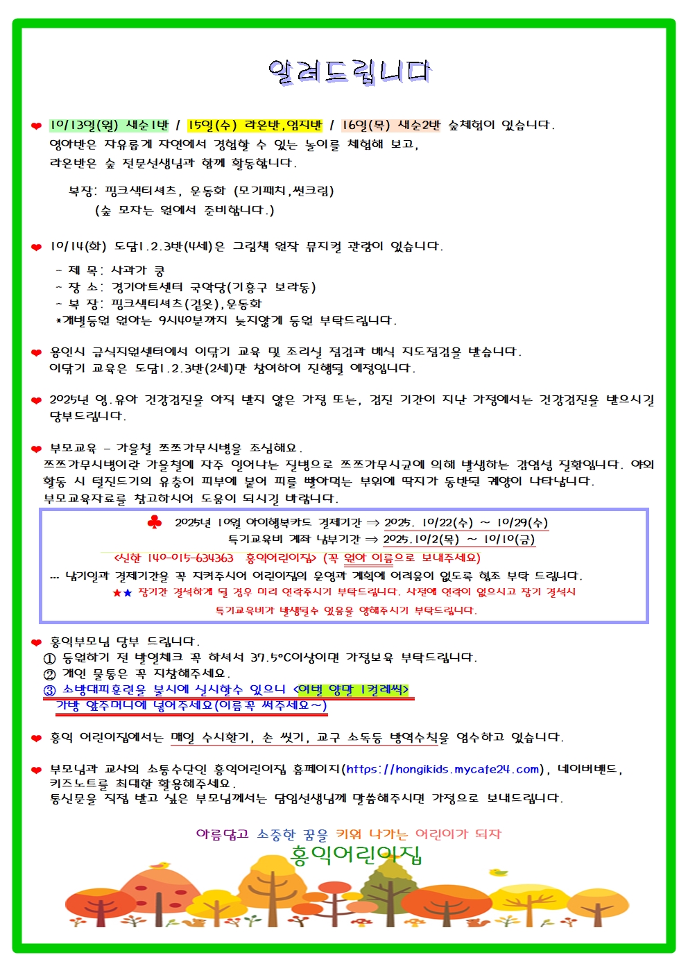 10월 3주 알림글 & 부모교육자료 & 방역소독