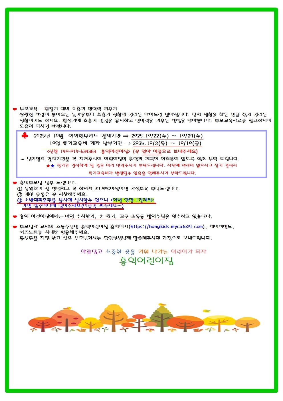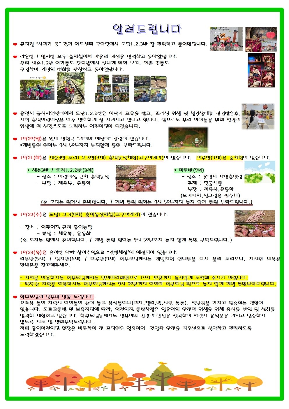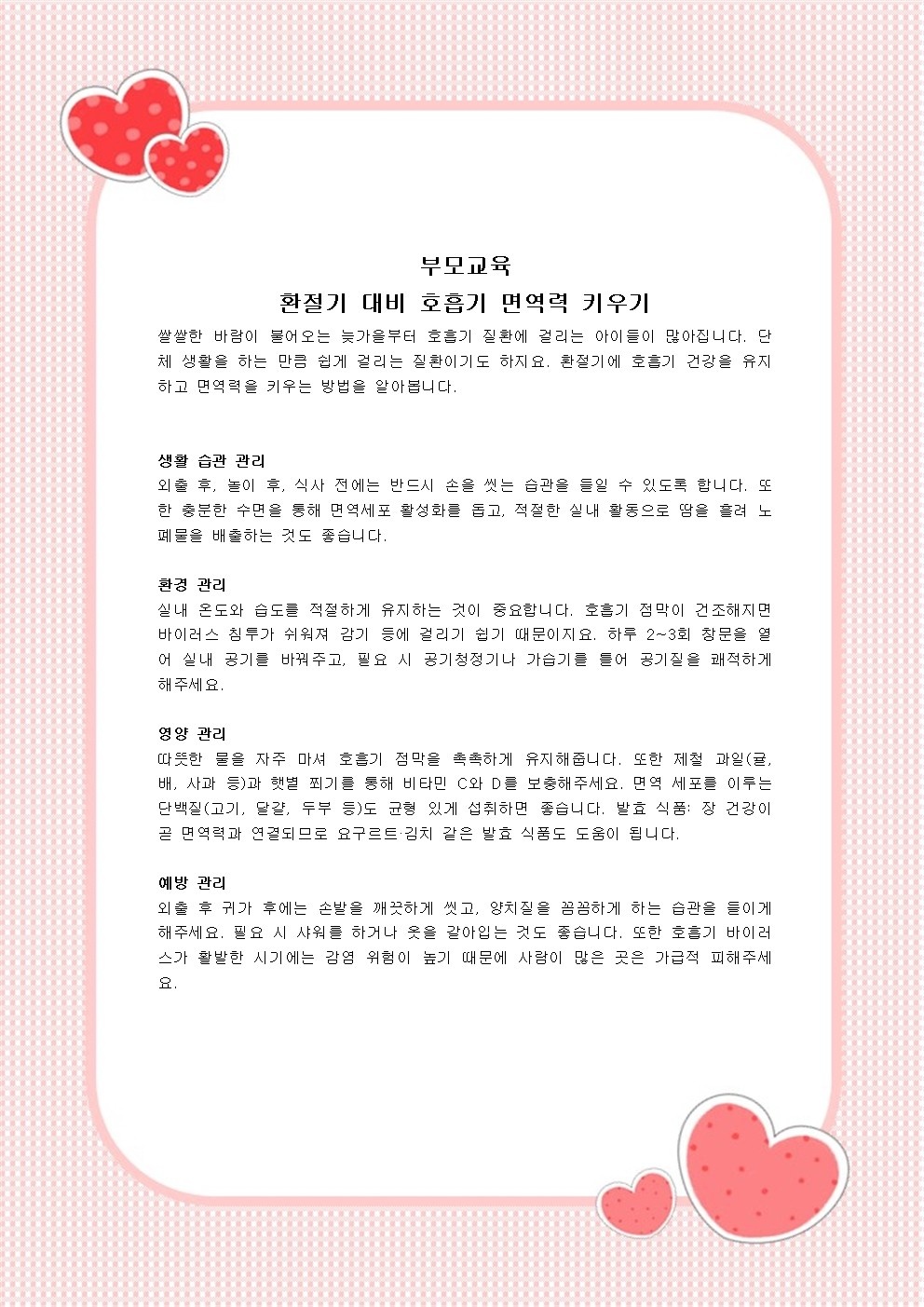 10월 3주 알림글 & 부모교육자료 & 방역소독
